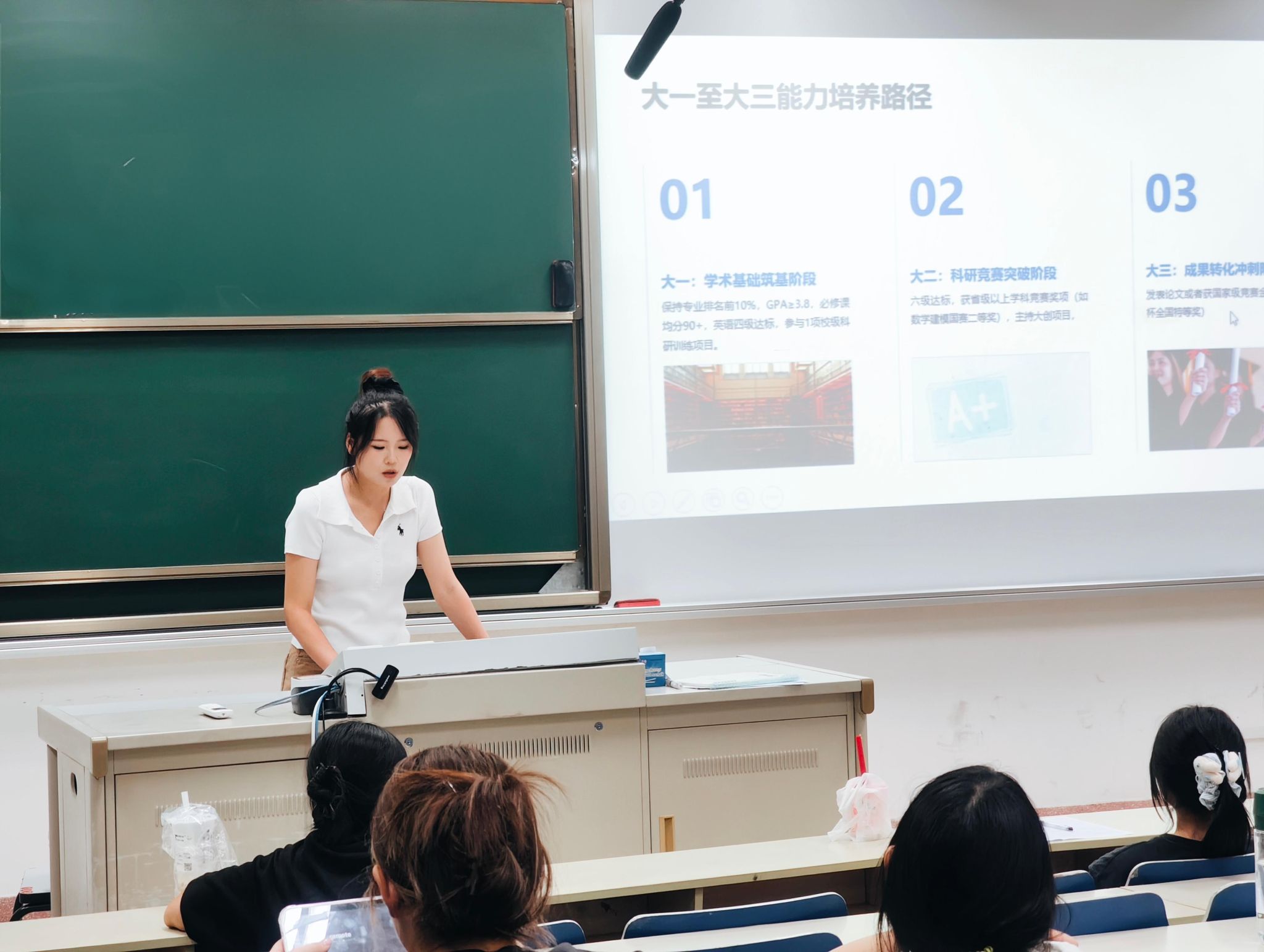 学长学姐结合自身成功经验,为新生指点方向、传递方法。现场同学专注聆听、积极互动,进一步拓展了对学科发展路径的认知,也为未来的多元选择奠定了坚实基础。