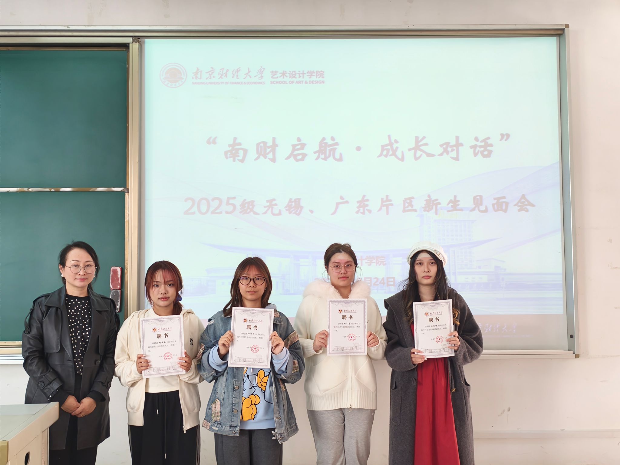 见面会上,张荣霞副书记向首批无锡和广东片区“招生助理团”成员颁发聘书。这支由优秀学子组成的队伍,未来将作为学院与生源地高中之间的桥梁,积极参与招生宣传,分享在校学习与生活体验,助力提升学院在两地的影响力和吸引力。
